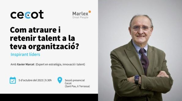 Us convidem a la sessió presencial “Com atreure i retenir talent a la teva organització” amb Xavier Marcet, expert en estratègia, innovació i talent. La xerrada, de la mà de Marlex, tindrà lloc el dijous 5 d’octubre de 9:30 h a 11:00 h a la seu de la Cecot. Durant la sessió també s’ha organitzat una […]