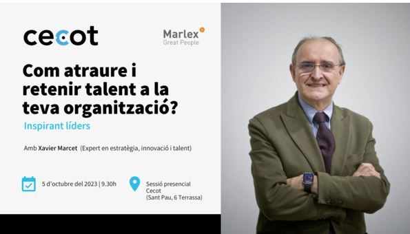 Us convidem a la sessió presencial “Com atreure i retenir talent a la teva organització” amb Xavier Marcet, expert en estratègia, innovació i talent. La xerrada, de la mà de Marlex, tindrà lloc el dijous 5 d’octubre de 9:30 h a 11:00 h a la seu de la Cecot. Durant la sessió també s’ha organitzat una […]